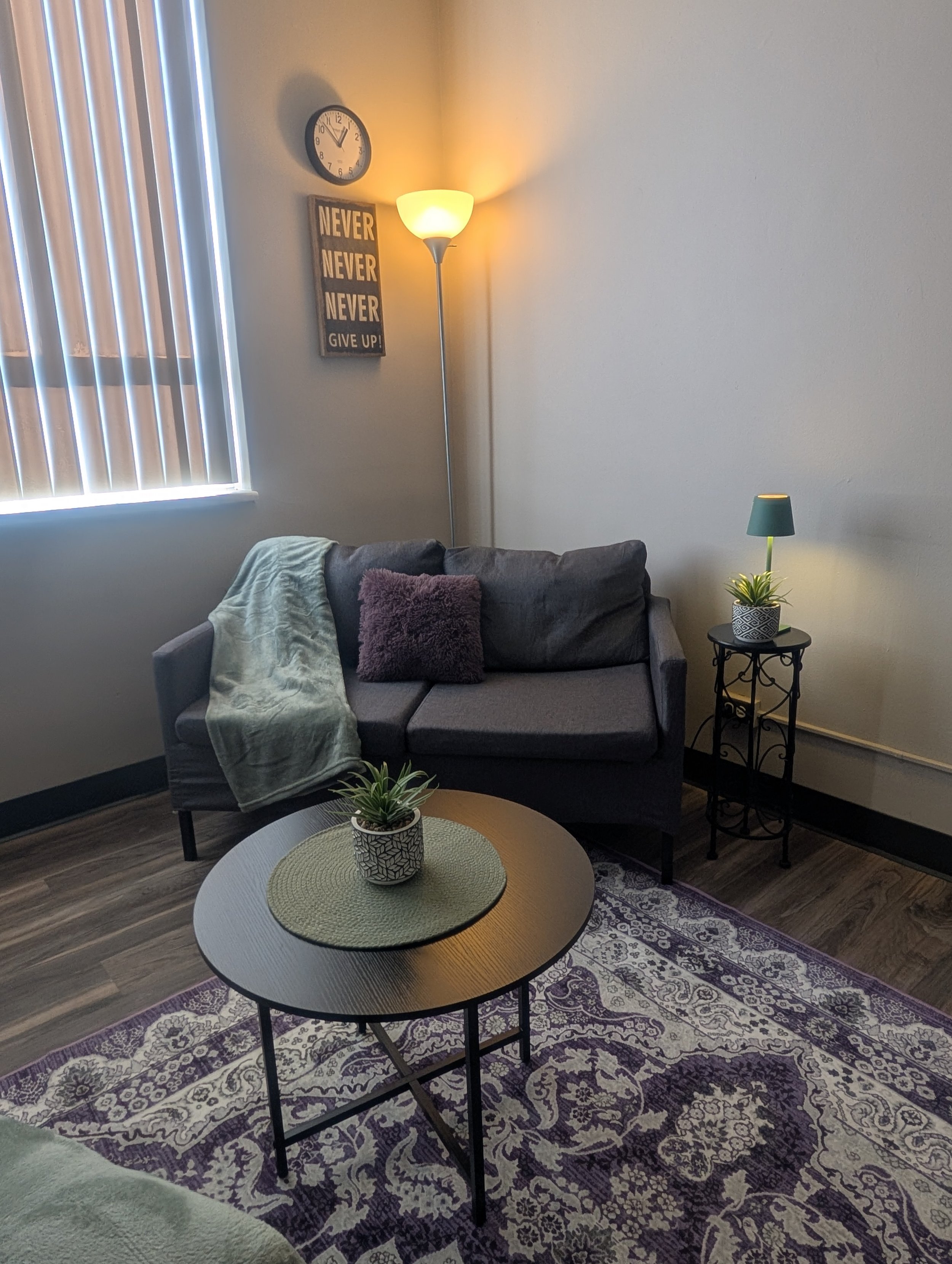 All of your appointments will either take place in your home via telehealth, or in my private cozy office